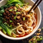 Dan Dan Noodles is a traditional Sichuan dish featuring a spicy, nutty sauce made with Chinese sesame paste, chili oil, and Sichuan pepper, served over fresh noodles and topped with savory minced pork and preserved mustard greens. This recipe balances bold flavors and textures, offering a vibrant and comforting meal that is both authentic and easy to prepare.