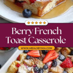 Pair this Berry French Toast Bake with crispy bacon or sausage links if you want some savory balance. Fresh fruit salad or a simple green smoothie works well too, especially for a lighter, brunch-style meal.