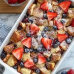 This Berry French Toast Casserole is a delightful and easy-to-make breakfast dish featuring layers of cubed French bread soaked in a cinnamon-vanilla egg mixture, topped with fresh strawberries and blueberries, then baked to golden perfection. Ideal for family gatherings or a weekend brunch, it’s sweet, comforting, and served with a dusting of powdered sugar and maple syrup for added indulgence.