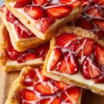 This Strawberry Danish recipe features flaky puff pastry filled with creamy sweetened cream cheese and topped with fresh, macerated strawberries. Finished with a golden bake and optional glaze or strawberry jam, these elegant pastries are perfect for breakfast, brunch, or dessert.