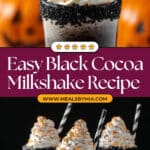 This spooky Black Milkshake is perfect for Halloween celebrations, featuring a rich blend of vanilla ice cream, black cocoa powder, and a touch of maple syrup. Optional whipped cream topping and a black sanding sugar rim make it visually striking as well as deliciously indulgent.