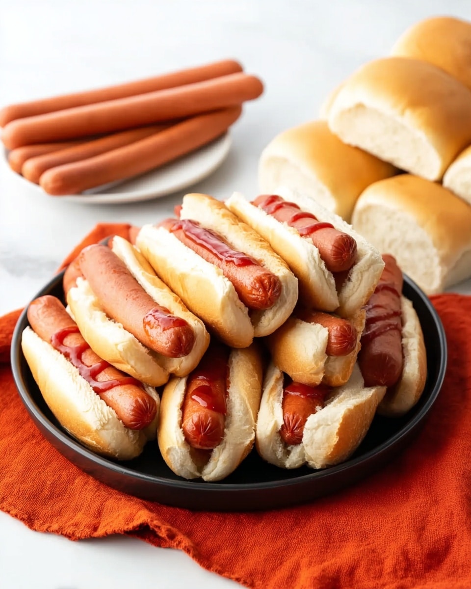 I’ve tried freezing the cooked hot dogs (without buns or ketchup), and they reheat nicely. Just thaw in the fridge overnight before reheating. Avoid freezing once assembled to preserve the best bun texture. This way you can prep the “fingers” in advance and assemble right before serving.