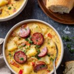 PrintCajun Potato Soup with Andouille Sausage and Cheddar Recipe