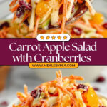 A refreshing and vibrant Carrot Apple Salad combining crisp matchstick carrots, two varieties of apples, and a tangy-sweet dressing made with vanilla yogurt and mayo. Enhanced with dried cranberries, mandarin segments, and a hint of lemon juice to prevent browning, this salad is perfect as a light and healthy side dish or snack.
