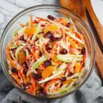 A refreshing and vibrant Carrot Apple Salad combining crisp matchstick carrots, two varieties of apples, and a tangy-sweet dressing made with vanilla yogurt and mayo. Enhanced with dried cranberries, mandarin segments, and a hint of lemon juice to prevent browning, this salad is perfect as a light and healthy side dish or snack.