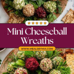 This festive Mini Cheeseballs Wreath recipe features two flavorful cheese ball fillings—Ranch and Zesty Herb—formed into bite-sized balls and decorated with vibrant toppings like dried cranberries, nuts, green onions, and fresh herbs. Perfect for holiday gatherings or any party, this appetizer is easy to prepare ahead of time and beautifully presented as an elegant wreath.