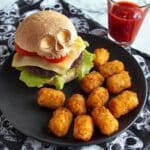 - Assemble and Serve: Place each cheeseburger on a skull bun and add preferred burger toppings such as tomato, lettuce, ketchup, mustard, mayonnaise, onions, and pickles. Serve immediately and enjoy your spooky feast.
