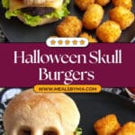 Create a spooky and fun meal with these Cheeseburger Skulls. This recipe features skull-shaped hamburger buns made from soft, buttery dough alongside perfectly cooked, cheese-topped beef patties also shaped like skulls. Ideal for Halloween or themed parties, this creative twist on classic cheeseburgers is both playful and delicious.