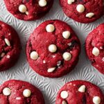 Cheesecake Stuffed Red Velvet Cookies combine the rich, moist flavor of classic red velvet cookies with a creamy cheesecake center. These indulgent treats feature a soft red velvet cookie dough studded with white chocolate chips, wrapped around a frozen cheesecake filling, then baked to perfection. Perfect for dessert lovers craving a decadent, beautifully textured cookie with a surprise creamy center.