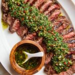 - Slice and Serve: Cut the steak into ½-inch slices against the grain. Arrange on a serving platter and top with fresh chimichurri sauce. Serve with additional chimichurri on the side.