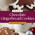 Delightfully spiced and rich chocolate gingerbread cookies that combine classic holiday flavors like cinnamon, ginger, and cloves with the deep taste of cocoa and semisweet chocolate. Perfectly soft yet sturdy, these cookies are great for rolling out, cutting into festive shapes, and decorating with smooth royal icing made from meringue powder and powdered sugar.