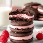 - Assemble Sandwich Cookies: Spread about 1 tablespoon of raspberry cream cheese frosting on the flat side of one chocolate cookie. Top with another cookie, pressing gently to create a sandwich. Repeat with the remaining cookies to yield approximately 14 sandwich cookies.