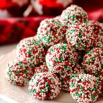 - Coat Truffles: Roll each chocolate ball in the ½ cup of sprinkles, covering all sides for a festive appearance and added texture.