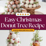 Create a festive and delicious Christmas Donut Tree, perfect for holiday gatherings. This charming dessert features donut holes stacked on a styrofoam cone, decorated with fresh rosemary sprigs and pomegranate arils, then dusted with powdered sugar for a snowy effect. It’s a no-bake, easy-to-assemble centerpiece that brings sweetness and holiday cheer to your table.