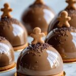 This festive Christmas Gingerbread Latte Mousse Domes recipe combines the warm spices of gingerbread with a rich coffee-flavored mousse, all encased in a smooth white chocolate mirror glaze. Perfect for holiday celebrations, these elegant domes feature a buttery gingerbread cookie base, a light and creamy coffee-gingerbread mousse, and a shiny mirror glaze that dazzles with optional decorations like mini gingerbread cookies and edible glitter.