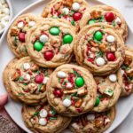 Christmas Kitchen Sink Cookies are a festive and fun twist on classic cookies, packed with a colorful mix of M&M’s, white chocolate chips, pretzel pieces, potato chip pieces, and red and green sprinkles. These cookies have a perfect balance of sweet, salty, and crunchy textures, making them a delightful treat for holiday celebrations.