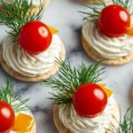 - Top with Tomatoes: Position a sliced cherry tomato half in the center of each cracker on top of the cream cheese and dill arrangement.