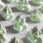 These festive Meringue Christmas Trees are light, airy, and sweet treats perfect for holiday celebrations. Made by whipping egg whites to stiff peaks, then colored green and piped into charming tree shapes, decorated with colorful sprinkles, and baked low and slow for crisp perfection. They make delightful additions to any Christmas dessert table or holiday party platter.