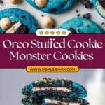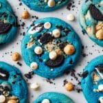 These Cookie Monster Cookies are a fun and colorful twist on classic chocolate chip cookies, featuring a vibrant blue dough filled with white and dark chocolate chips, mini cookie pieces, and a whole Oreo surprise center. Perfectly soft and slightly golden at the edges, these cookies are sure to delight both kids and adults alike with their eye-catching appearance and deliciously rich flavor.