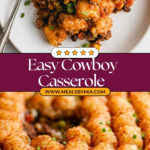 This hearty Cowboy Casserole combines seasoned ground beef, fresh vegetables, beans, and melted cheeses topped with crispy tater tots. Baked until bubbly and golden, it’s a comforting and satisfying meal perfect for family dinners or potlucks.