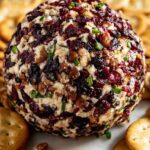 After your cheese ball has chilled, spread out the remaining dried cranberries, pecans, and chives on a plate. Remove the plastic wrap and roll your chilled cheese ball gently in the mixture, pressing lightly so the toppings stick evenly all around. This adds a gorgeous pop of color and that lovely nutty texture we’re after. Let it sit at room temperature for about 15 minutes before serving to soften slightly and release the flavors.