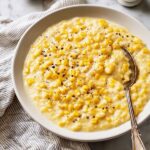 This creamy and comforting creamed corn recipe is perfect as a side dish for any meal. Made with fresh or frozen corn, butter, milk, and Parmesan cheese, it offers a rich and buttery flavor with a smooth, luscious texture. The gradual cooking process thickens the milk mixture to coat the corn tenderly, while garlic and fresh pepper add a subtle depth of flavor. Ideal for holiday dinners or everyday meals, this recipe is easy to prepare and sure to please the whole family.