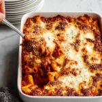 This classic Baked Ziti recipe features perfectly cooked ziti pasta tossed in a rich and creamy tomato sauce with spicy Italian sausage, topped with melted mozzarella and pecorino Romano cheeses. Baked until bubbly and golden, this hearty Italian-American casserole is the perfect comforting meal for family dinners or gatherings.