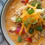 - Finish and Serve: Return the shredded chicken to the pot, stir to incorporate everything evenly, and heat through briefly if needed. Serve the soup hot, optionally topped with green onions, sharp cheddar cheese, and extra hot sauce for added flavor.