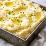 For special occasions, I’ve served these mashed potatoes piped through a piping bag with a decorative tip on a platter. It adds a classy touch and makes the meal feel festive. Adding a drizzle of browned butter on top just before serving is another way to make the dish pop visually and flavor-wise.