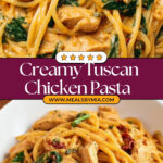 Creamy Tuscan Chicken Pasta combines tender, seasoned chicken breasts with linguine pasta in a rich and flavorful sauce of garlic, sun-dried tomatoes, fresh basil, and creamy Parmesan. This comforting dish is quick to make, featuring a luscious cream sauce that perfectly coats the pasta and spinach for a deliciously satisfying meal.