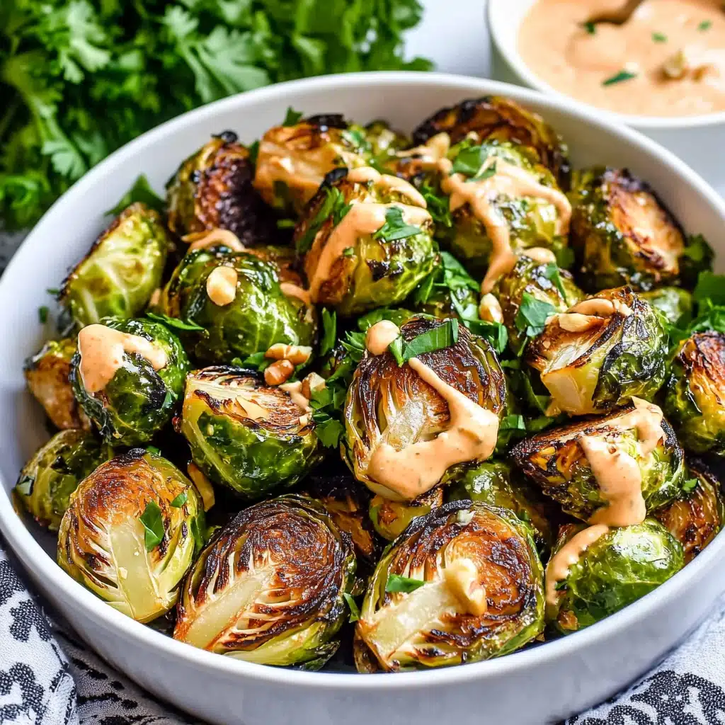 You’ll be amazed at how just a few simple, fresh ingredients can create such an unforgettable side. Each element in this dish plays a starring role—whether it’s the earthy depth of the sprouts, the richness of the spicy mayo, or those delightful crispy garnishes on top.