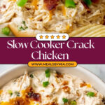 Crock Pot Crack Chicken is a creamy, cheesy, and flavorful slow cooker recipe featuring tender shredded chicken, ranch seasoning, cream cheese, crispy bacon, and cheddar cheese. This easy-to-make dish is perfect for busy days and can be served on buns as a sandwich or enjoyed in bowls.