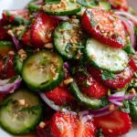 A refreshing and vibrant Cucumber Strawberry Salad combining sweet strawberries, crisp cucumbers, fresh herbs, and a tangy dressing. This light salad is perfect as a side dish or a healthy snack, featuring optional toppings like crumbled cheese and toasted nuts for added texture and flavor.