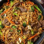 A flavorful and easy-to-make Beef Lo Mein recipe featuring tender strips of beef, fresh vegetables, and perfectly cooked noodles tossed in a savory homemade sauce. This classic Chinese-American dish comes together quickly on the stovetop, making it ideal for a satisfying weeknight dinner.