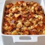 I’ve frozen this stuffing after baking, tightly covered in foil and a freezer bag. It keeps well up to 3 months. Just be sure to thaw it in the fridge overnight before reheating to maintain its texture and flavor.