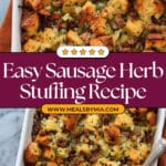 This Easy Sausage & Herb Stuffing is a savory, comforting side dish perfect for holiday meals or any family dinner. Made with tender bread cubes, browned Italian sausage, fresh herbs, and a flavorful blend of sautéed vegetables, this stuffing bakes to a golden, crispy perfection that complements roasted poultry beautifully.