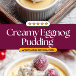 This Homemade Eggnog Pudding is a rich and creamy dessert combining the festive flavors of eggnog, nutmeg, and a hint of rum extract. Perfectly thickened with cornstarch and enriched with butter and egg yolks, this pudding is chilled until silky smooth and topped with whipped cream, freshly grated nutmeg, and optional sugared cranberries for a delightful holiday treat.