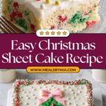 This festive Christmas Sheet Cake is a delightful, moist cake layered with rich homemade buttercream frosting. Bursting with holiday sprinkles in the batter and decorated intricately to resemble a Christmas tree using vibrant green frosting, colorful candy ornaments, and a candy belt bow, this sheet cake is perfect for holiday parties and family celebrations.