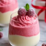 These Christmas Cranberry Mousse Cups are a festive layered dessert featuring a tart cranberry mousse balanced with a smooth vanilla mousse. Each cup displays vibrant cranberry flavor with a creamy texture, perfect for holiday celebrations. The mousse layers are carefully prepared with gelatin to set beautifully and garnished with sugared cranberries and fresh mint for an elegant presentation.