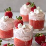 - Assemble Mousse: Divide the reserved ½ cup of strawberry puree evenly between 4 small or medium glasses (about 1 cup size each). Top the puree with the strawberry mousse mixture until glasses are full.