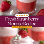 This Easy Fresh Strawberry Mousse is a light and airy dessert made with pureed fresh strawberries and whipped cream. Sweetened with sugar and chilled to perfection, it’s a refreshing treat perfect for warm days or elegant gatherings. The mousse is topped with fresh sliced strawberries for a delightful presentation and burst of fruity flavor.