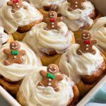 - Glaze and Decorate: Spread the cream cheese glaze over the warm rolls and top each with an icing gingerbread person for a festive touch.