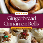 Delight in these festive Gingerbread Cinnamon Rolls featuring a soft, spiced dough filled with a rich molasses and brown sugar cinnamon mixture. Topped with a creamy cream cheese glaze and charming gingerbread people, these rolls offer a perfect blend of holiday flavors and a visually festive treat.
