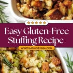 This gluten-free stuffing pairs perfectly with roasted turkey, baked chicken, or even a seared pork tenderloin. On the side, I love serving it with green beans almondine or honey glazed carrots for that classic holiday vibe.