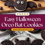 Create spooky Halloween Oreo Bat Cookies that are perfect for festive treats! These no-bake cookies feature Double Stuf Oreo halves assembled with melted chocolate to form bat wings, eyes, and horns, making a fun and easy recipe for kids and adults alike during the Halloween season.
