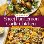 This Sheet Pan Herby Lemon Garlic Chicken and Potatoes recipe features tender boneless chicken thighs marinated in a zesty blend of lemon, garlic, and herbs, roasted alongside crispy fingerling potatoes, lemon slices, and sweet onions. Finished with crumbled feta, fresh parsley, dill, and optional red pepper flakes, it’s a simple, flavorful, and colorful meal perfect for easy weeknight dinners.