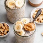 A nutritious and delicious High Protein Peanut Butter Banana Overnight Oats recipe that’s perfect for a quick and satisfying breakfast. This creamy blend of ripe banana, almond milk, vanilla yogurt, gluten-free oats, cinnamon, chia seeds, and peanut butter offers a balanced mix of protein, fiber, and healthy fats. Prepared the night before, it’s ready to enjoy in the morning with optional garnishes like extra banana slices, peanut butter, and crunchy toppings.