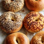 - Add Toppings: If desired, dip the tops of boiled bagels into your choice of toppings such as everything bagel seasoning, sesame seeds, or cheese. Place the topped bagels on a parchment-lined baking sheet. For cheese toppings, dip the bottom side as well for a crunchy bite.