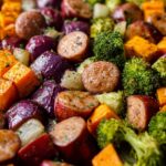 Sheet Pan Honey Garlic Kielbasa is a flavorful one-pan meal featuring savory pork kielbasa paired with roasted sweet potatoes, mixed potatoes, and vibrant broccoli tossed in a homemade honey garlic sauce. This easy recipe requires minimal prep and cleanup, making it perfect for a quick weeknight dinner.