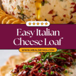 This Italian Cheese Loaf is a festive and flavorful Christmas appetizer perfect for holiday gatherings. Combining a blend of cream cheese, sour cream, herbs, and a mixture of flavorful add-ins including cheddar, roasted peppers, and salami, this loaf is chilled and topped with sun-dried tomatoes and fresh herbs to create a visually stunning and deliciously creamy spread served with crackers.